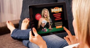 Woman playing poker on tablet