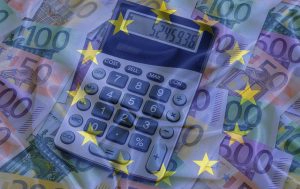 Taschenrechner und Euro-Geldscheine