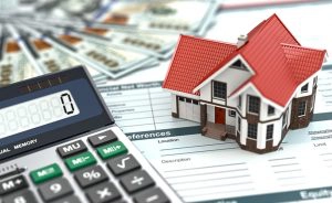 Mortgage calculator. House, noney and document.