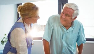 Nurse taking care of a senior man in a retirement home