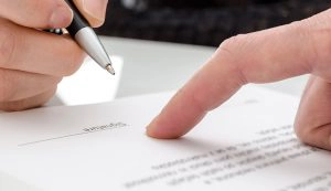Woman signing a paper